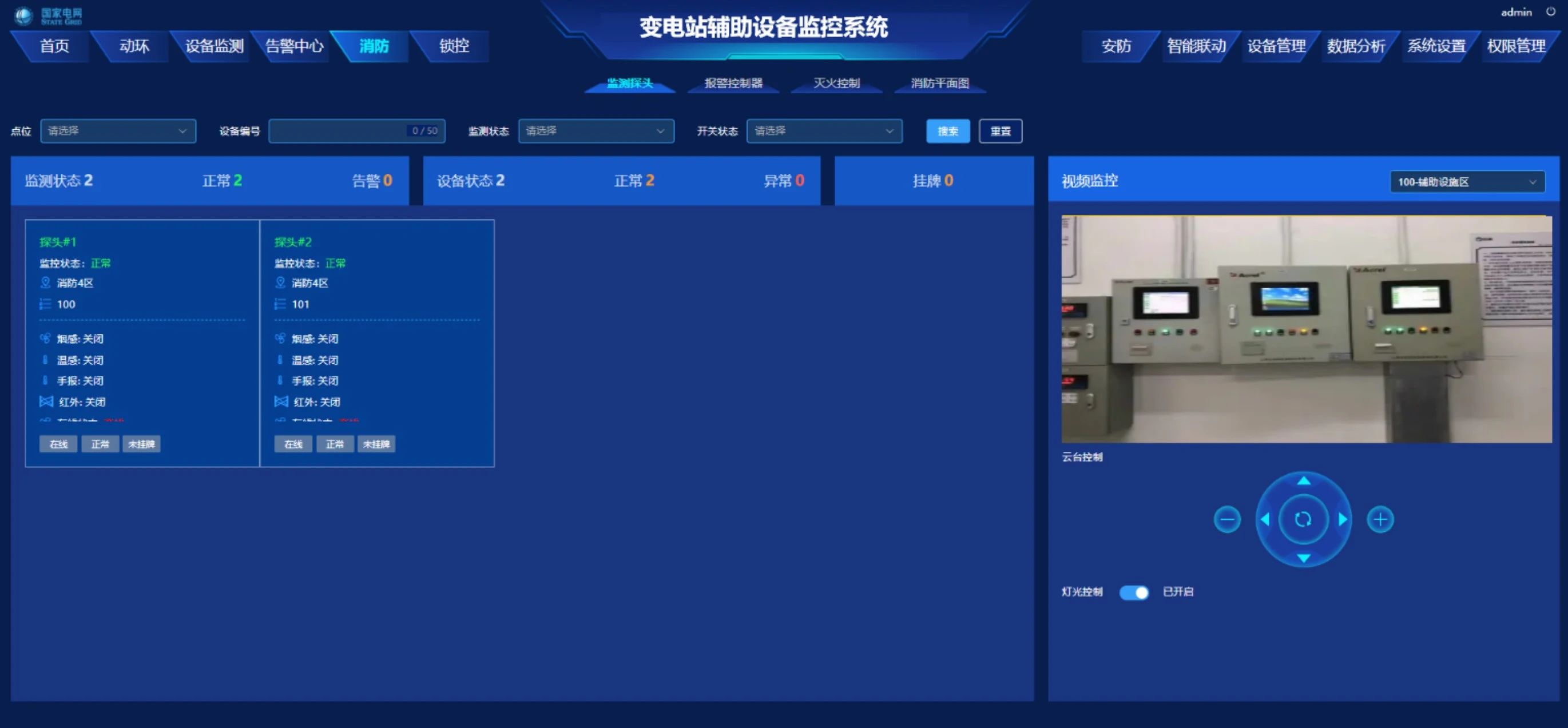 對變電站內的消防設備進行實時監控,包括探頭、煙霧報警器、溫度傳感器等,及時發現火災隱患,對變電站內的滅火設備進行控制,提高變電站的安全性。