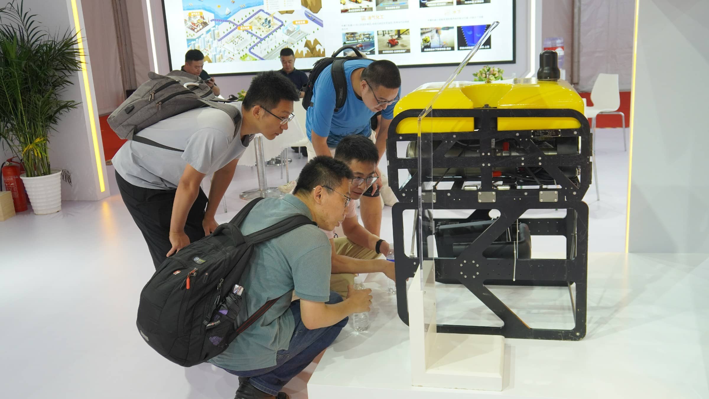申昊科技展示的申龍一號(hào)水下機(jī)器人是展臺(tái)亮點(diǎn)之一。公司以“海陸空隧”戰(zhàn)略目標(biāo),向海底世界進(jìn)軍。該機(jī)器人負(fù)載能力強(qiáng),適合搭載水下作業(yè)機(jī)械手進(jìn)行救助打撈工作。其強(qiáng)大的運(yùn)動(dòng)能力可以在作業(yè)水域快速運(yùn)輸緊急消防物資;其在線圖像增強(qiáng)和實(shí)時(shí)目標(biāo)識(shí)別攝像系統(tǒng),可以更加清晰的獲取水下影像,方便進(jìn)行監(jiān)測和圈定有效目標(biāo)物。吸引了眾多觀眾興趣和咨詢。